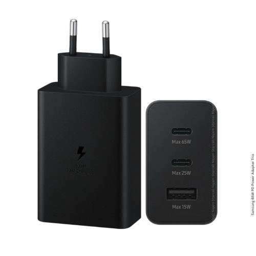 Prix : 2300 DALa puissance de sortie pour un seul appareil ou plusieurs appareils varie comme suit: jusqu'à 65 W pour la charge d'un seul appareil en conditions PD 3.0 et SFC (Super Fast Charging) 2.0 avec USB-C. Jusqu'à 25 W pour la charge d'un seul appareil en conditions PD 3.0 et SFC (Super Fast Charging) avec USB-C. Jusqu'à 15 W pour la charge d'un seul appareil en conditions AFC (Adaptive Fast Charging) avec USB-A. Cet adaptateur peut charger jusqu'à 3 appareils simultanément avec une puissance de sortie totale maximale de 65 W, soit respectivement 35 W, 25 W et 5 W. La vitesse de charge reelle peut varier en fonction du nombre d'appareils. *La charge ultra-rapide (SFC): est la methode de charge rapide de Samsung prise en charge par les Galaxy Note (Note 10 et versions ulterieures), la série Galaxy S (S10 5G et versions ultérieures) et autres appareils compatibles SFC, tels que les iPhones (iPhone 8 et versions ulterieures). *La charge rapide adaptative (AFC): est un protocole de charge rapide pour les appareils Samsung. *La technologie SFC 2.0 (45 W): est disponible sur les Galaxy S20 Ultra, Note 10+ et versions ulterieures. D'autres appareils pourraient etre ajoutés ulterieurement: *L'USB PD 3.0 (Power Delivery): est la norme USB IF permettant une charge rapide via USB-C. Il est recommandé d'utiliser un cable USB standard. *Les modeles PD 65 W et SFC 45 W : necessitent un cable 5 A.